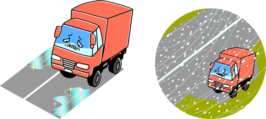 私自身仕事でトラックを運転し、途中でスリップ。