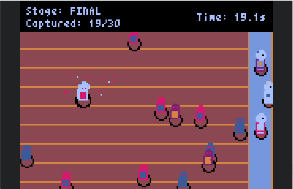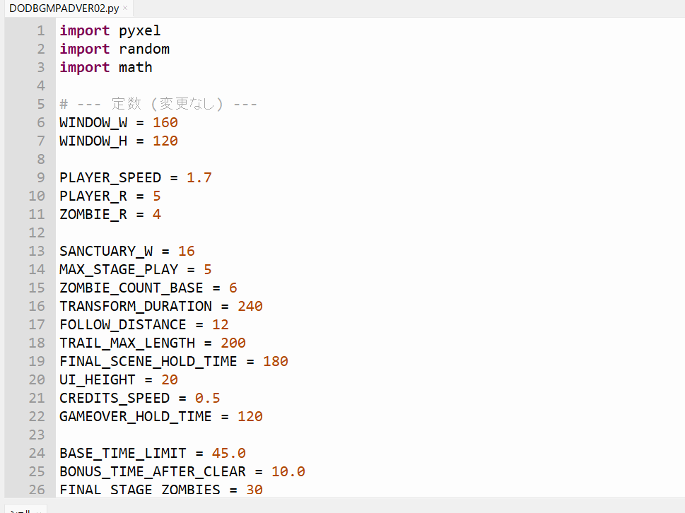 次にThonnyで動作するプログラムに、具体的な指示入力(主人公は人間、敵はゾンビ、全6ステージ、最終ステージは3人捉えられクリアするとゾンビになる演出)と続けます。